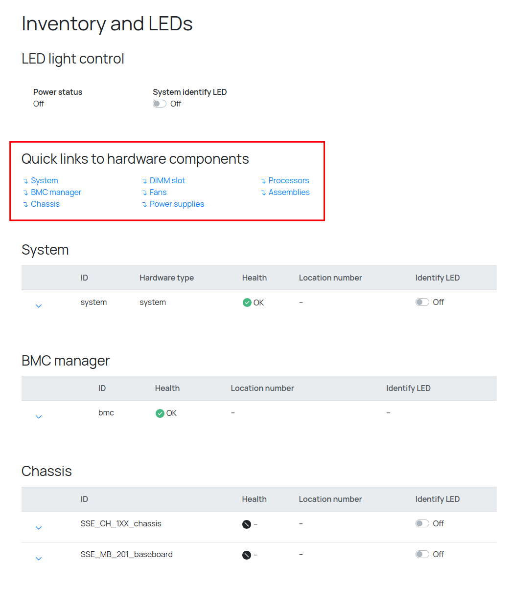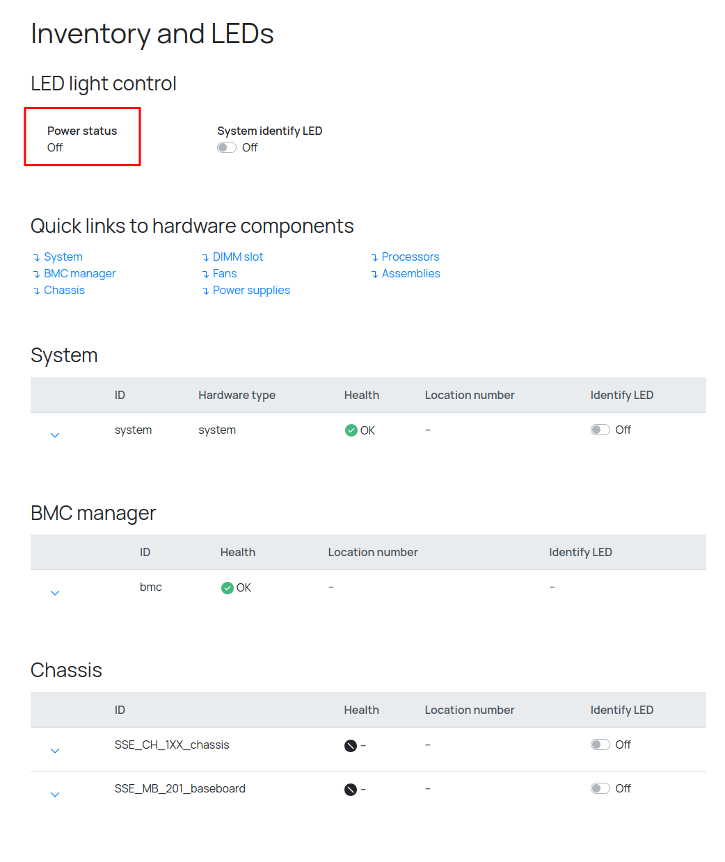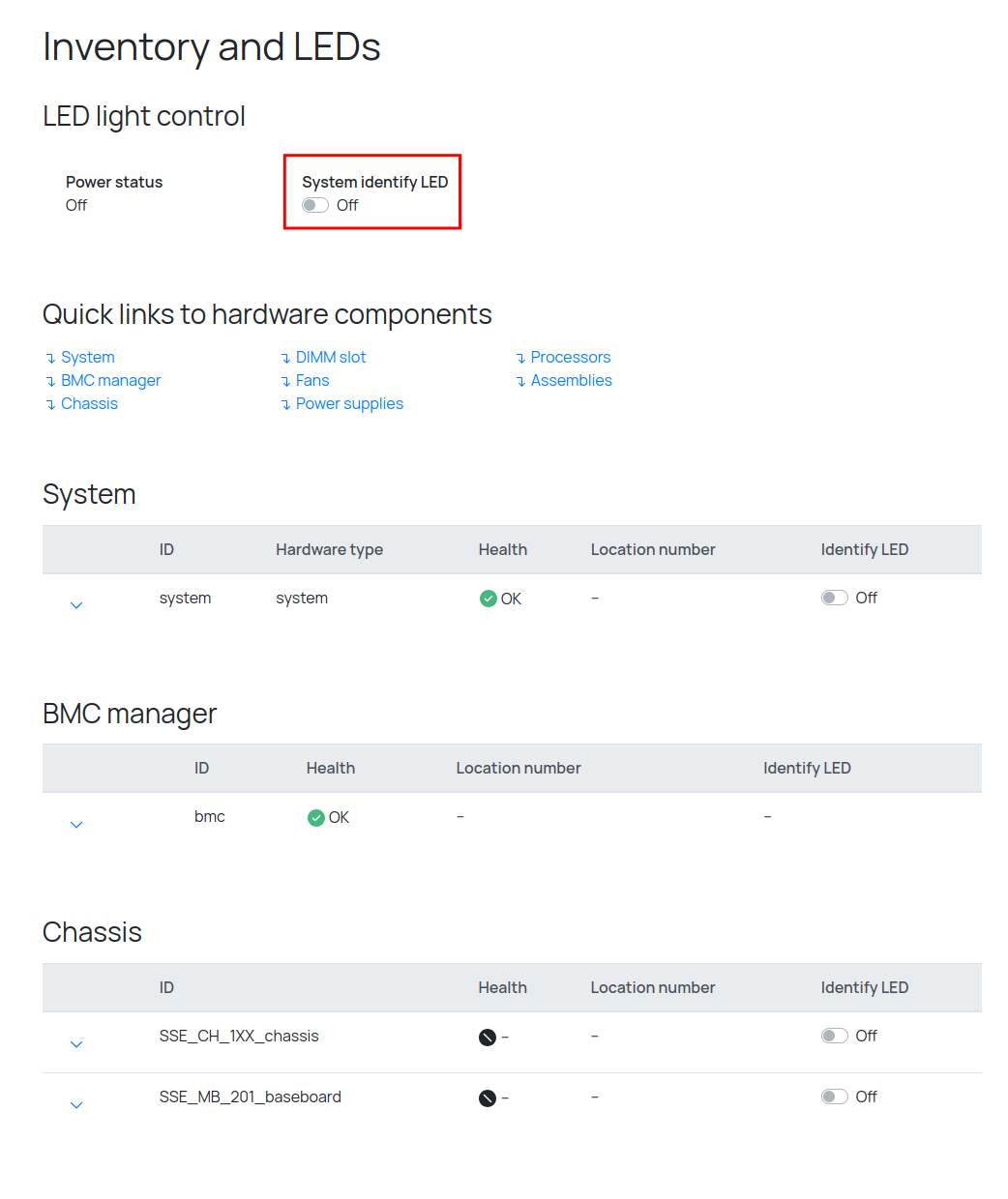 А также тут показан текущий статус идентификационного светодиода: