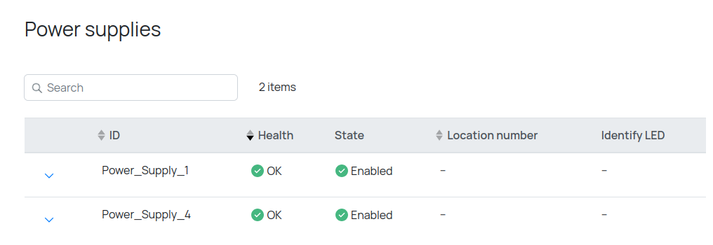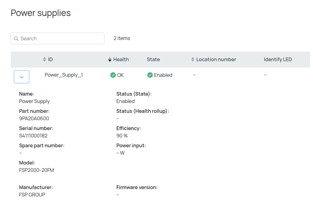 Данная таблица содержит общую информацию о модулях питания сервера.