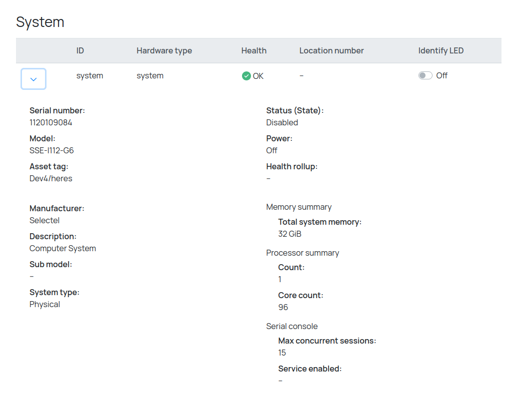 Примечание: источником данной информации является хост, поэтому после изменения конфигурации необходимо хотя бы 1 раз запустить хост, чтобы BMC обновило данную информацию.