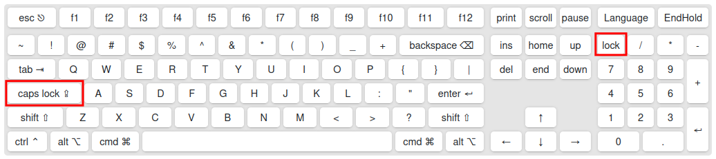 Внимание: Это действие меняет только раскладку экранной клавиатуры, но не клавиатуры сервера. Состояние экранной клавиатуры и серверной ОС должны быть синхронизированы.