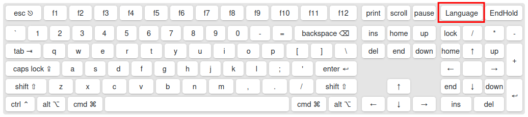 Для смены языка ввода необходимо нажать на кнопку Language на самой клавиатуре в правом верхнем углу.