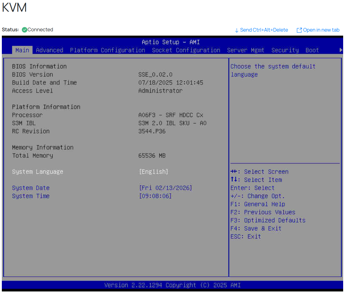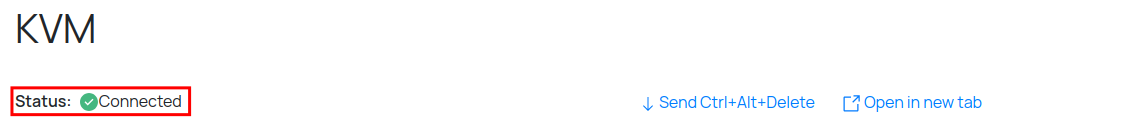 Слева отображается статус подключения веб-страницы к KVM-приложению BMC.