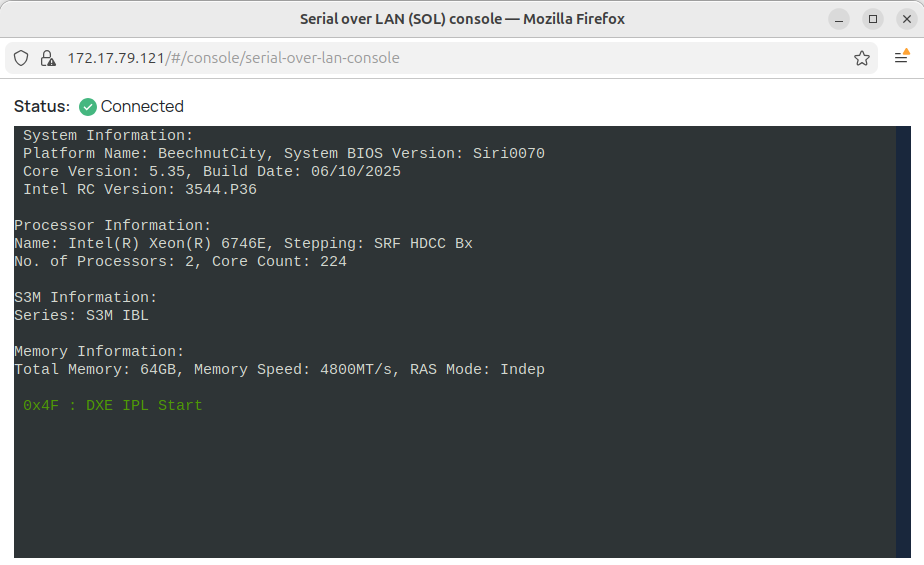 В данном окне находится Serial-Over-Lan консоль.
