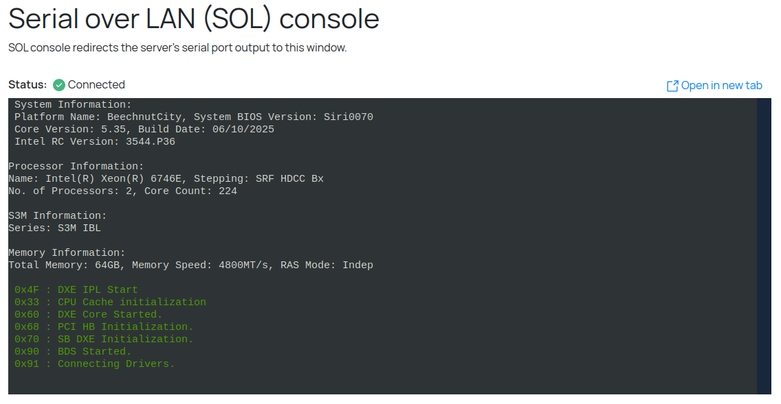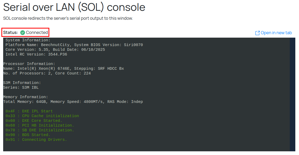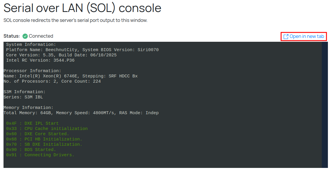 Сверху справа находится кнопка открытия SOL консоли с новом окне: