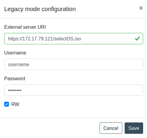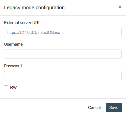 Данная опция позволяет передать файл загрузочного образа (.iso), который находится на инструментальной машине.