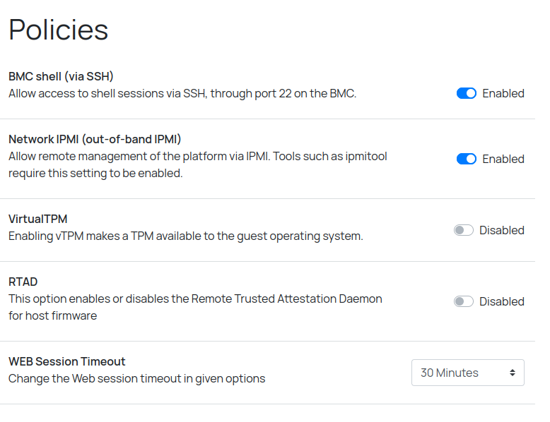 Данный пункт меню позволяет включить или выключить удаленное управление платформой по протоколу IPMI.